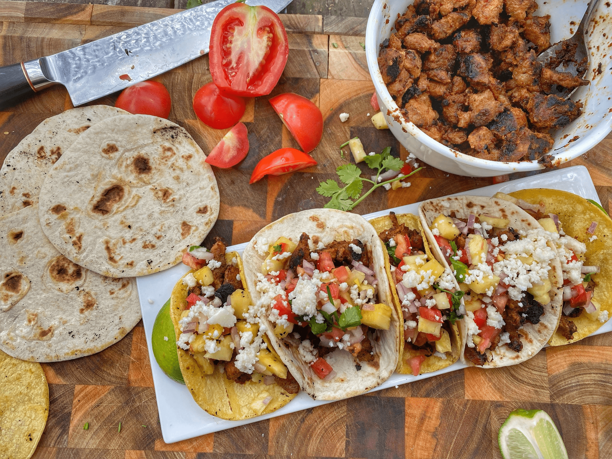 Al Pastor Tacos with Tomatillo Salsa and Pineapple Pico