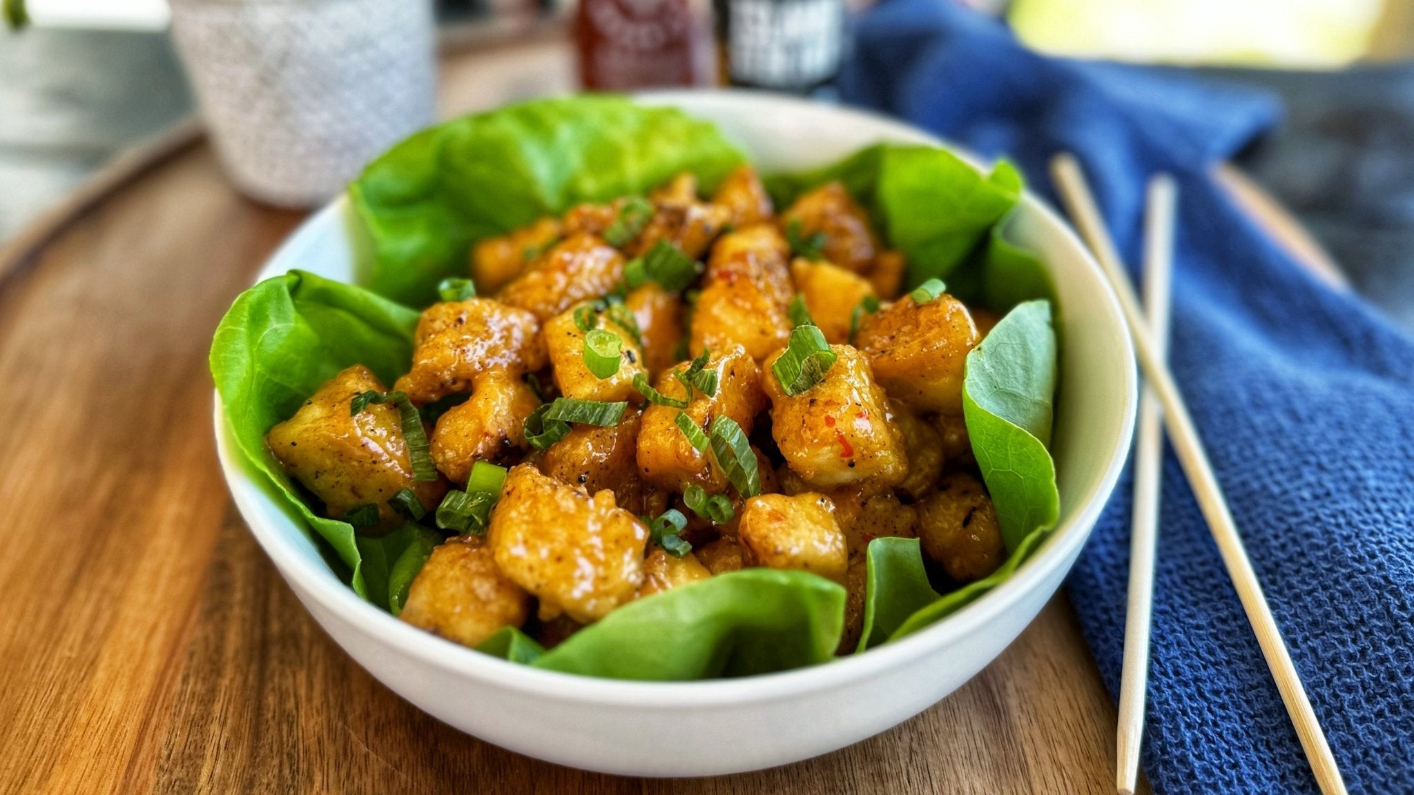 Remove the cooked tofu from the griddle and place it in a large bowl. Drizzle the bang bang sauce over the tofu and toss to combine.