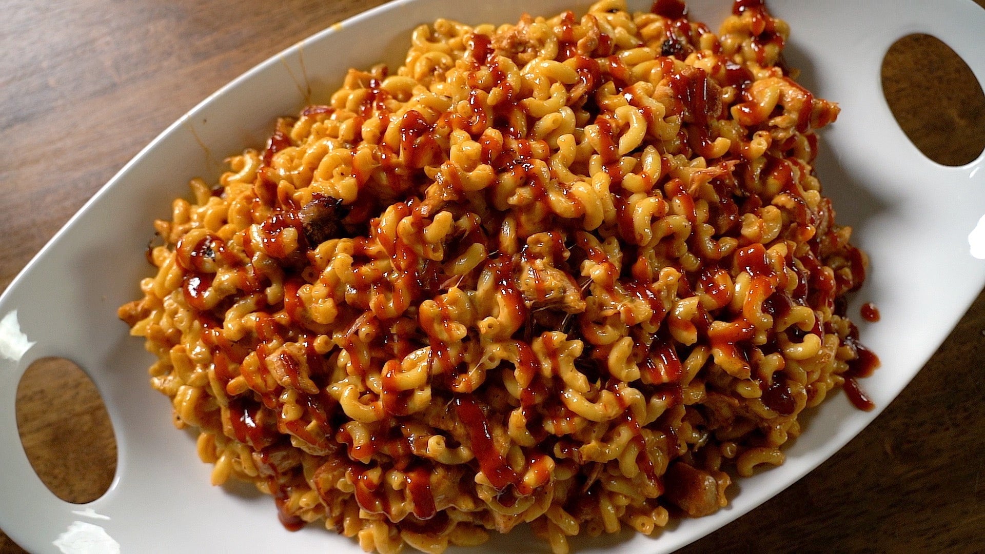 Finish and Serve: Remove the mac and cheese mixture from the griddle. Drizzle the remaining 0.5 cups of BBQ sauce on top for extra flavor.