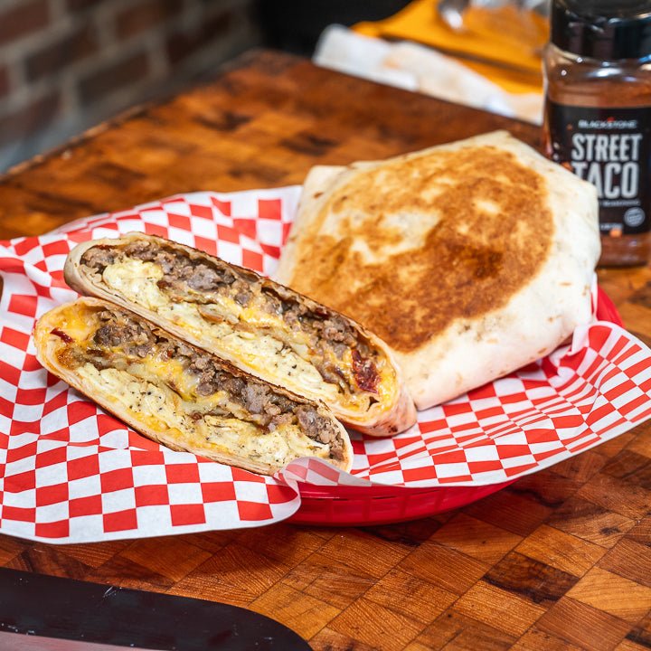 In a bowl, beat the eggs with salt, pepper, and the Street Taco Seasoning.