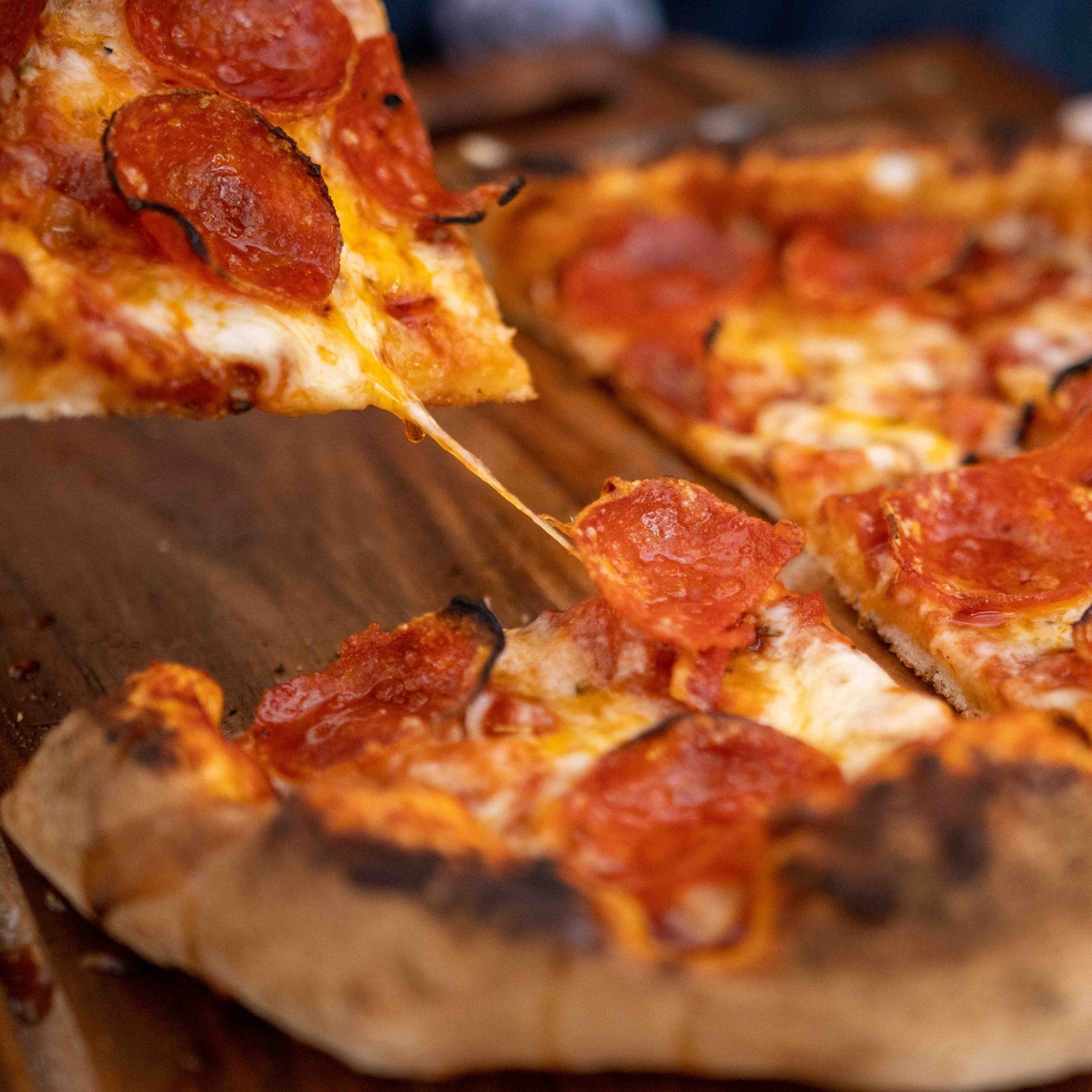 Once the pizza stone reaches 700°F, launch the pizza onto the stone and lower the heat to low.