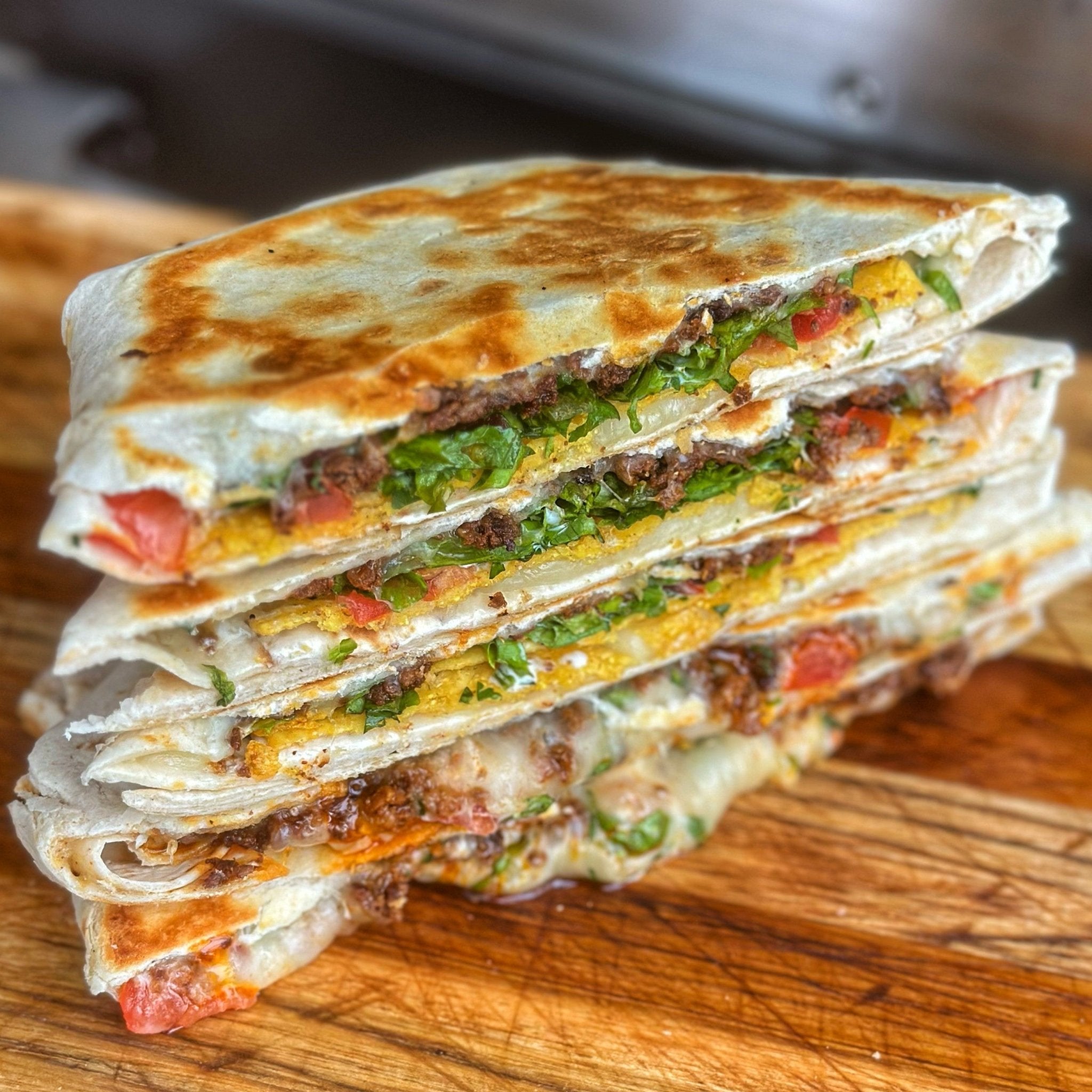 Fold each tortilla into a 6-sided crunchwrap (consider adding a street taco-size tortilla inside if there are too many ingredients).