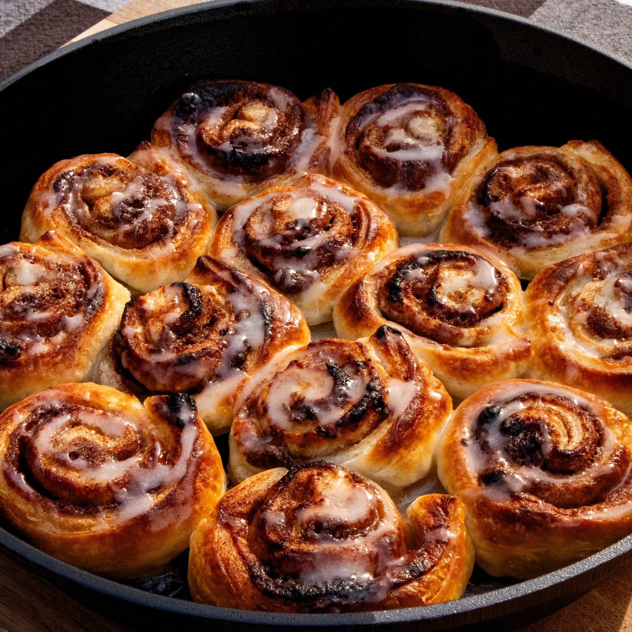 Place the cinnamon rolls in the skillet, leaving space between them to allow for puffing