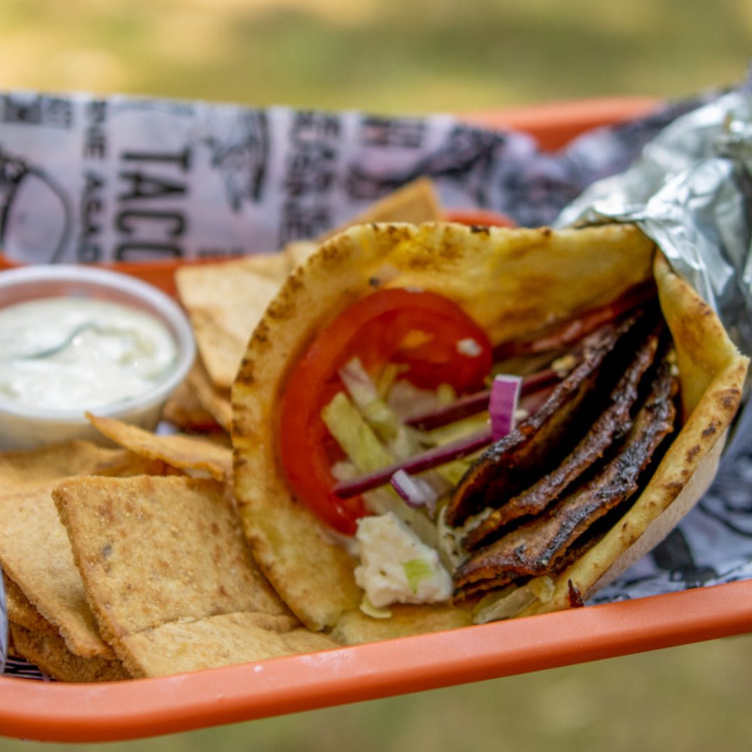 Heat the precooked gyro meat on the Blackstone griddle for 20-30 seconds per side, until warmed through. Add the gyro meat to the pita, then sprinkle feta cheese on top.