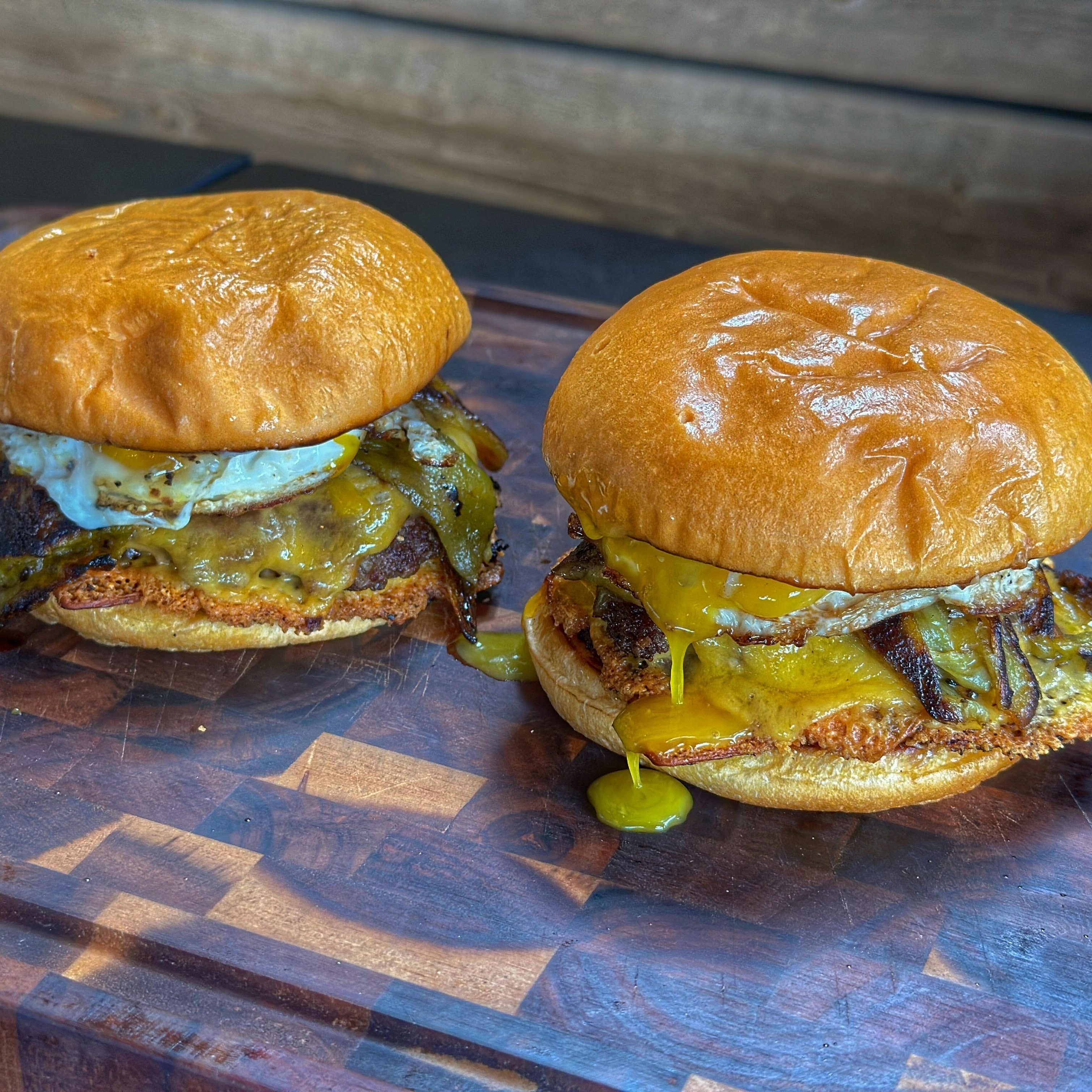 - During the last minute, top each patty with a slice of smokehouse cheddar. Remove from heat once melted.