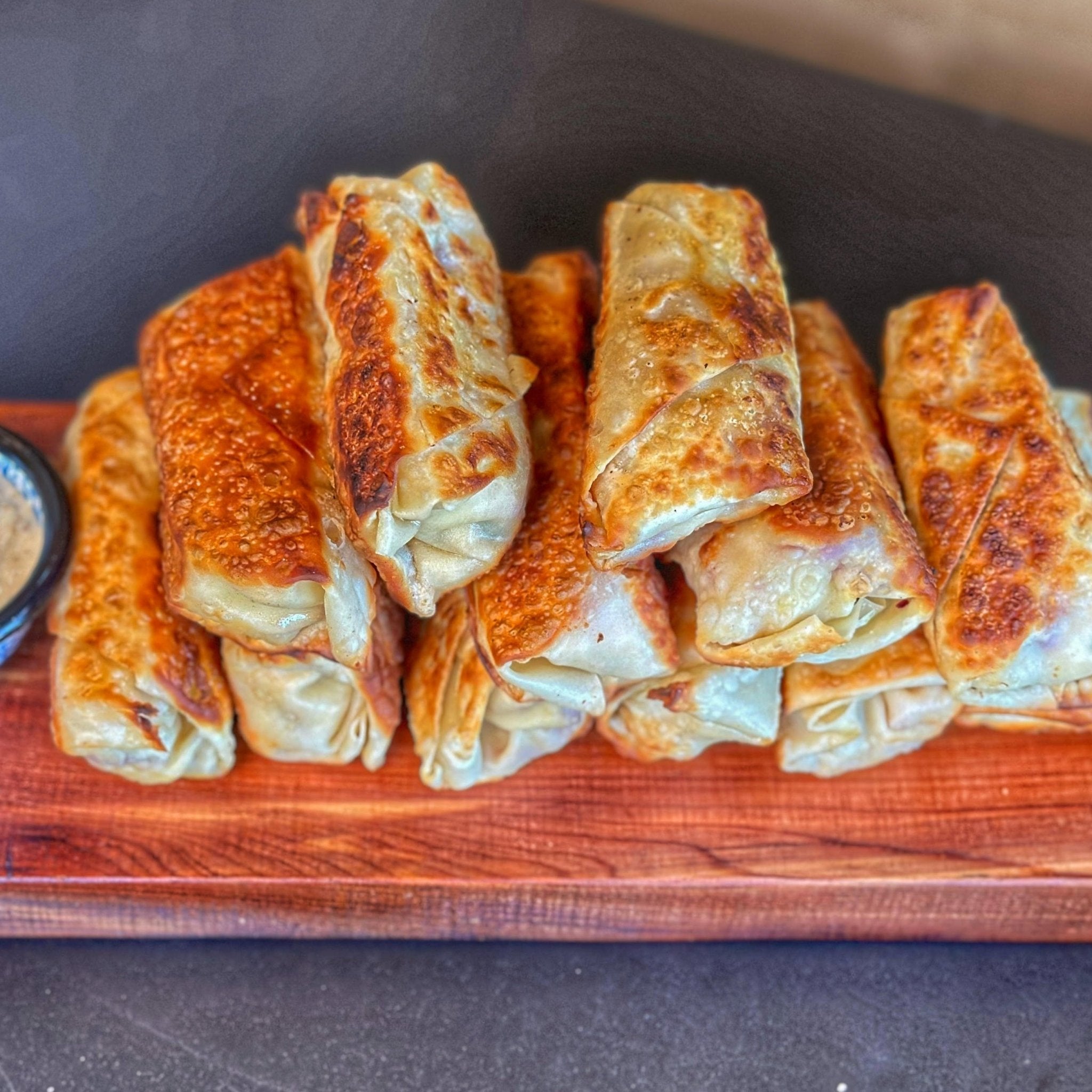 - Drizzle a little oil on the griddle. Place the egg rolls seam-side down and cook, gently turning with tongs to brown all sides. Add more oil as needed until crisp and golden.