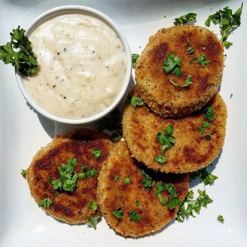 Serve with White Pepper Gravy, garnished with chopped curly parsley and lemon zest (optional).