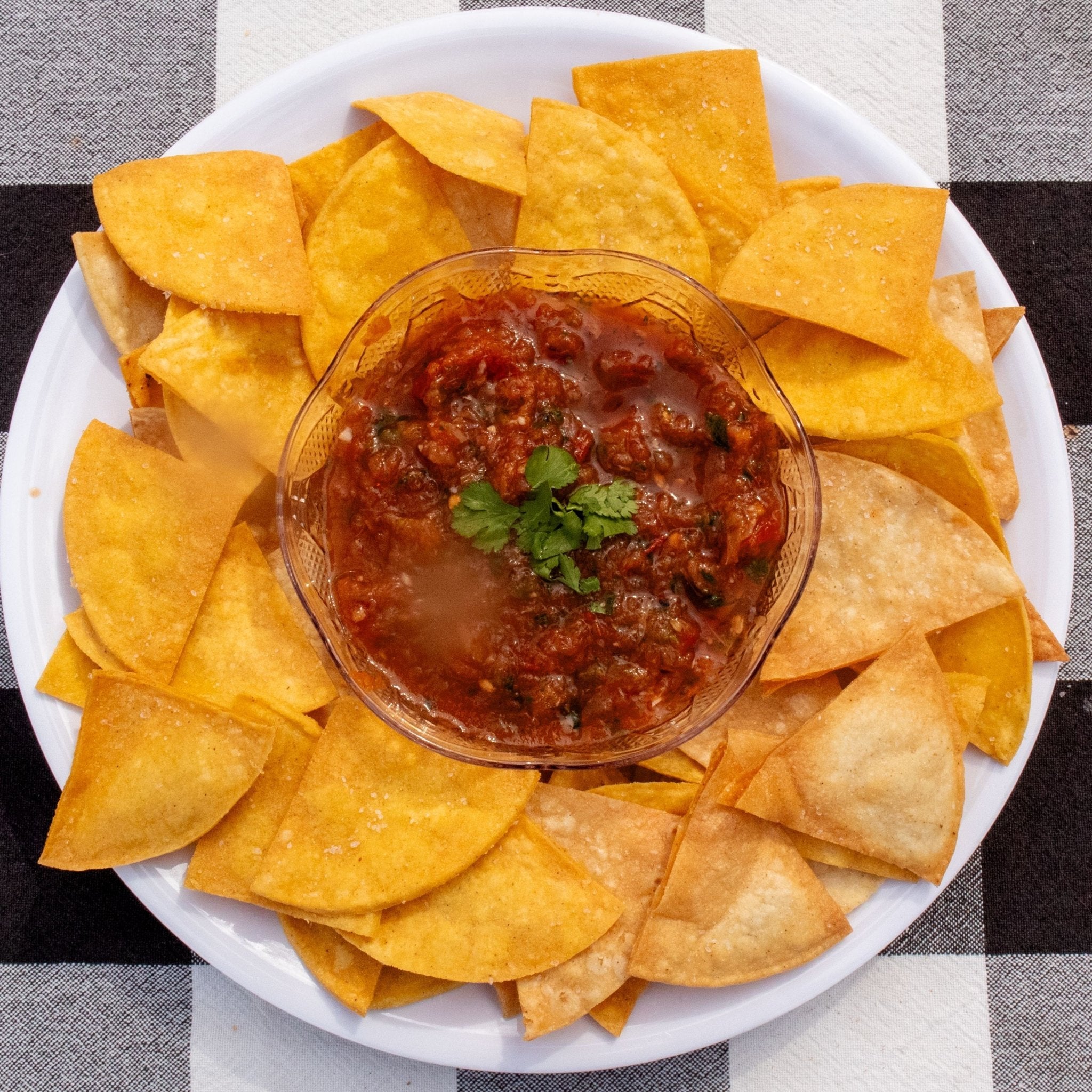 Fry tortilla chips in oil for 3-4 minutes or until edges start to brown.