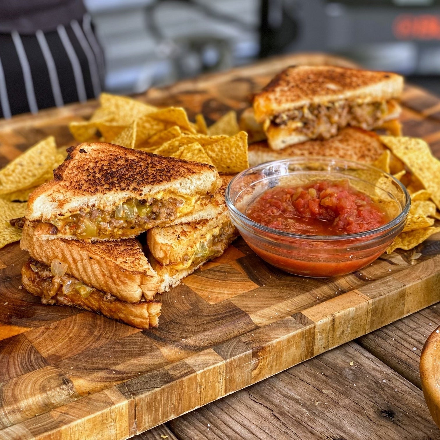 - Assemble: Place American cheese on 4 slices of toast, then add the cheesy beef mixture. Top with the remaining slices of toast.