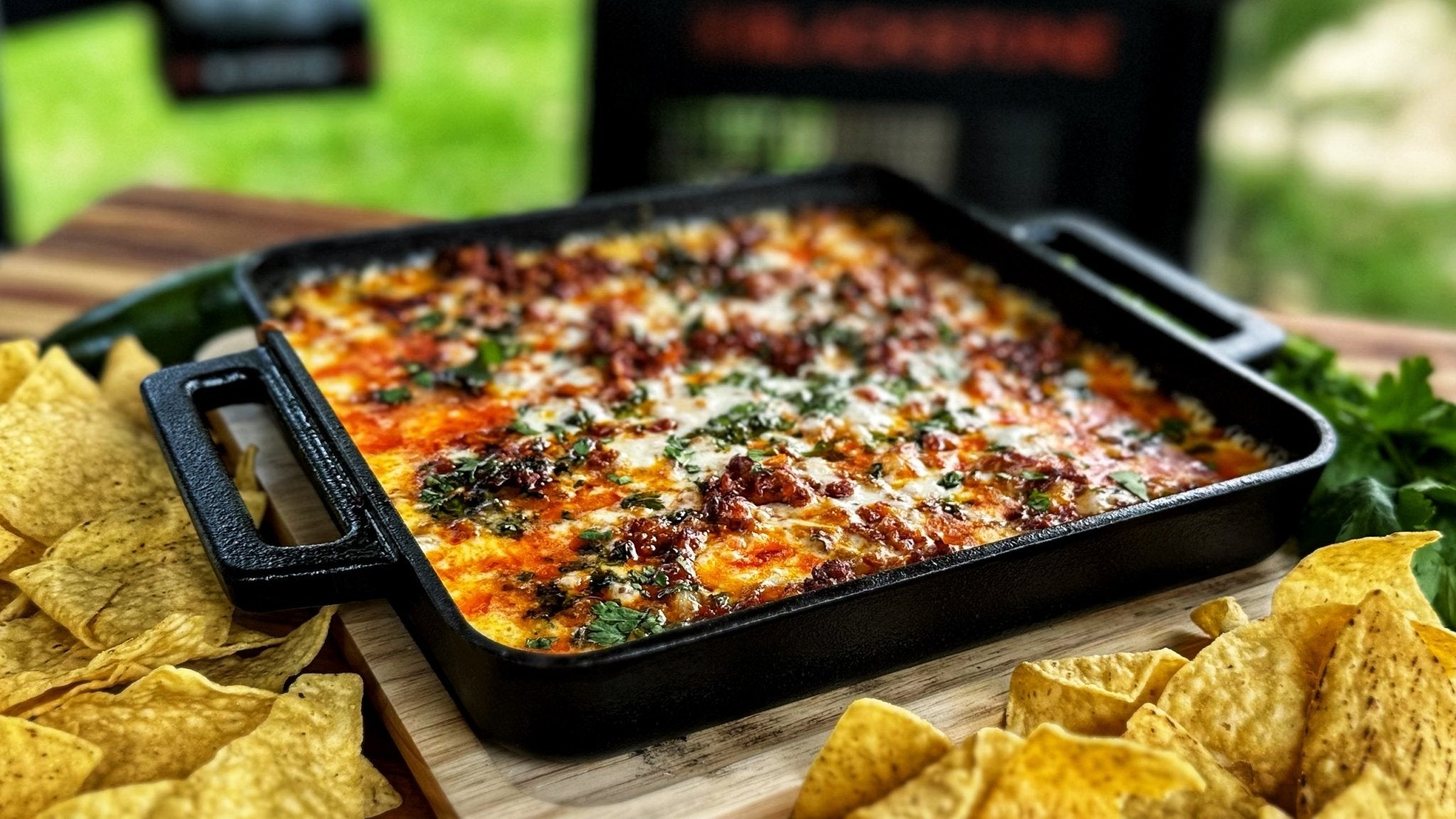 Preheat your Blackstone Pizza Oven to 500°F. Bake the dip for 6 minutes or until the cheese is melted and bubbly.