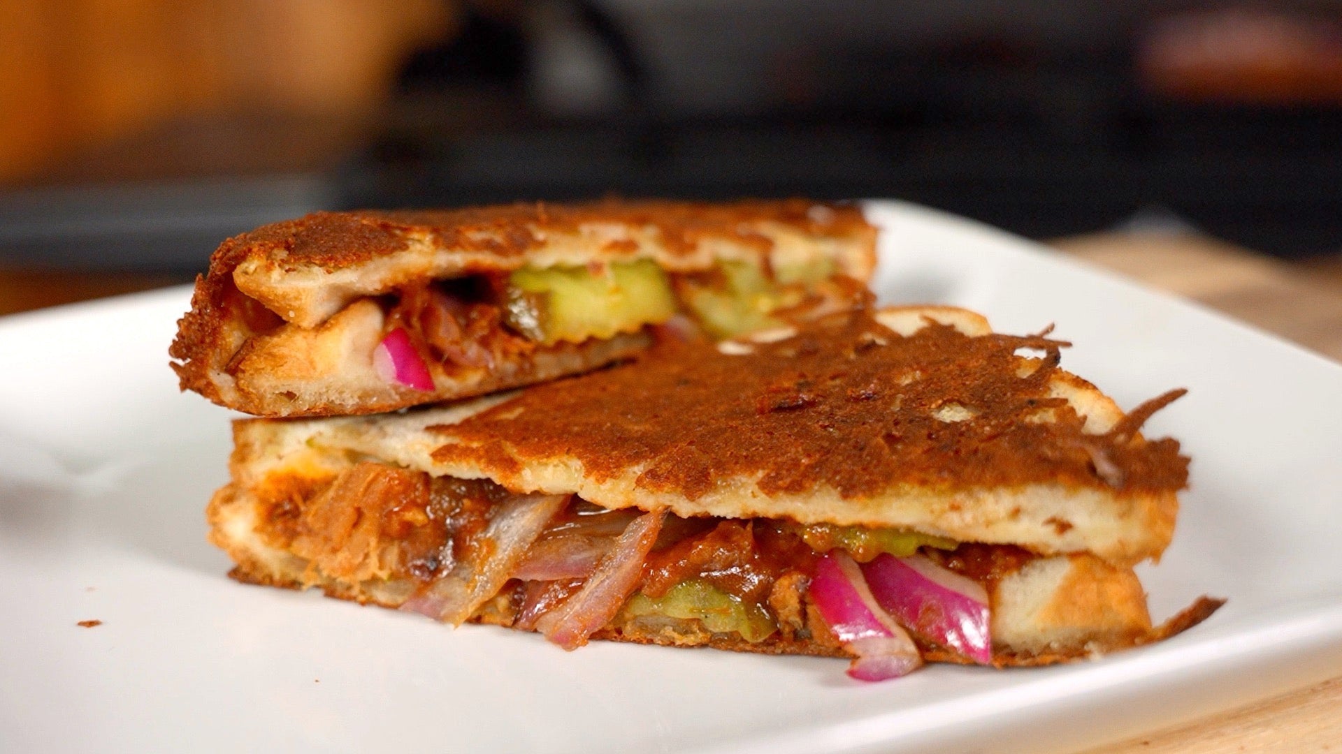 Serve and enjoy your pulled pork inside-out grilled cheese!
