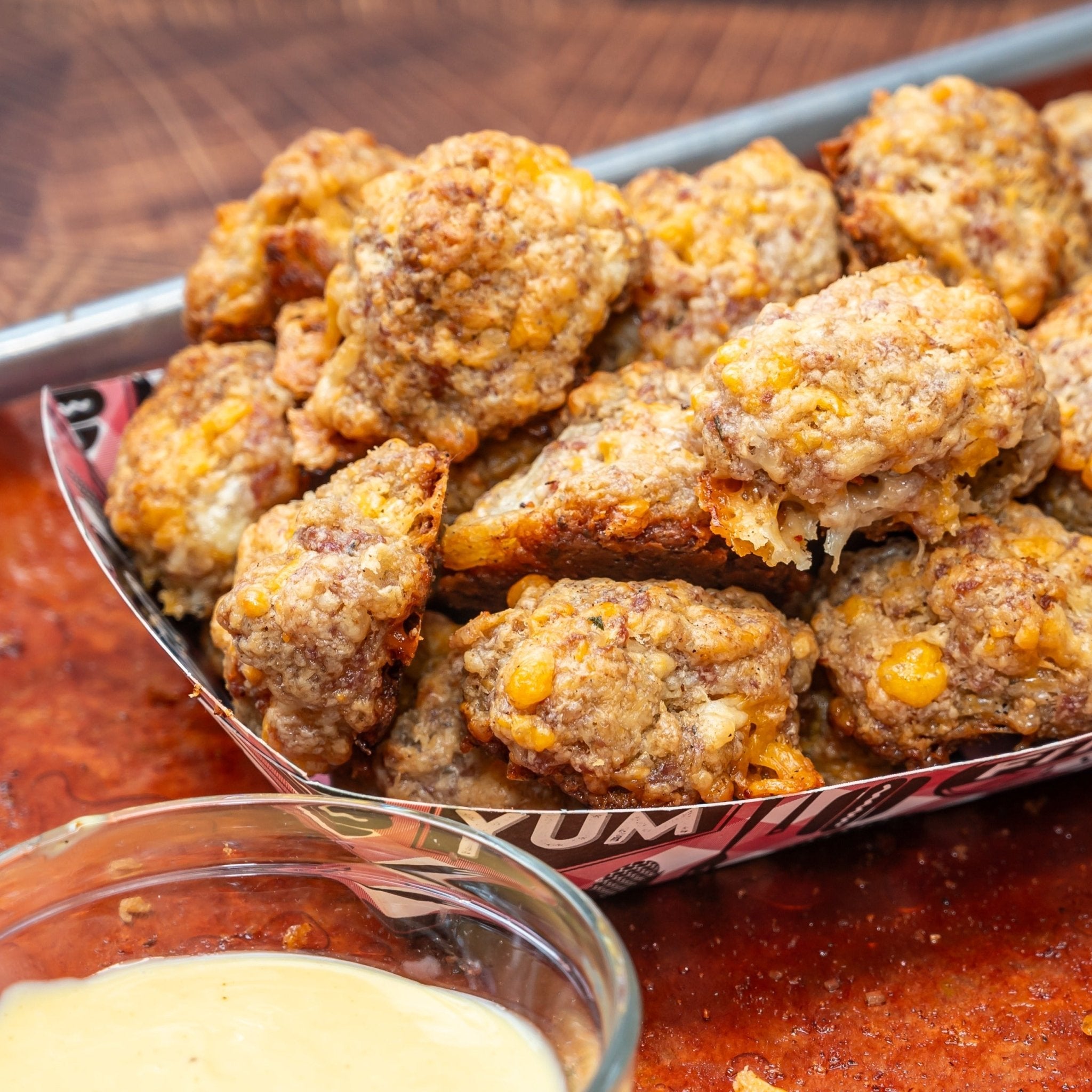In a large mixing bowl, combine the sausage, biscuit mix, cheese, and cream cheese. Mix well.