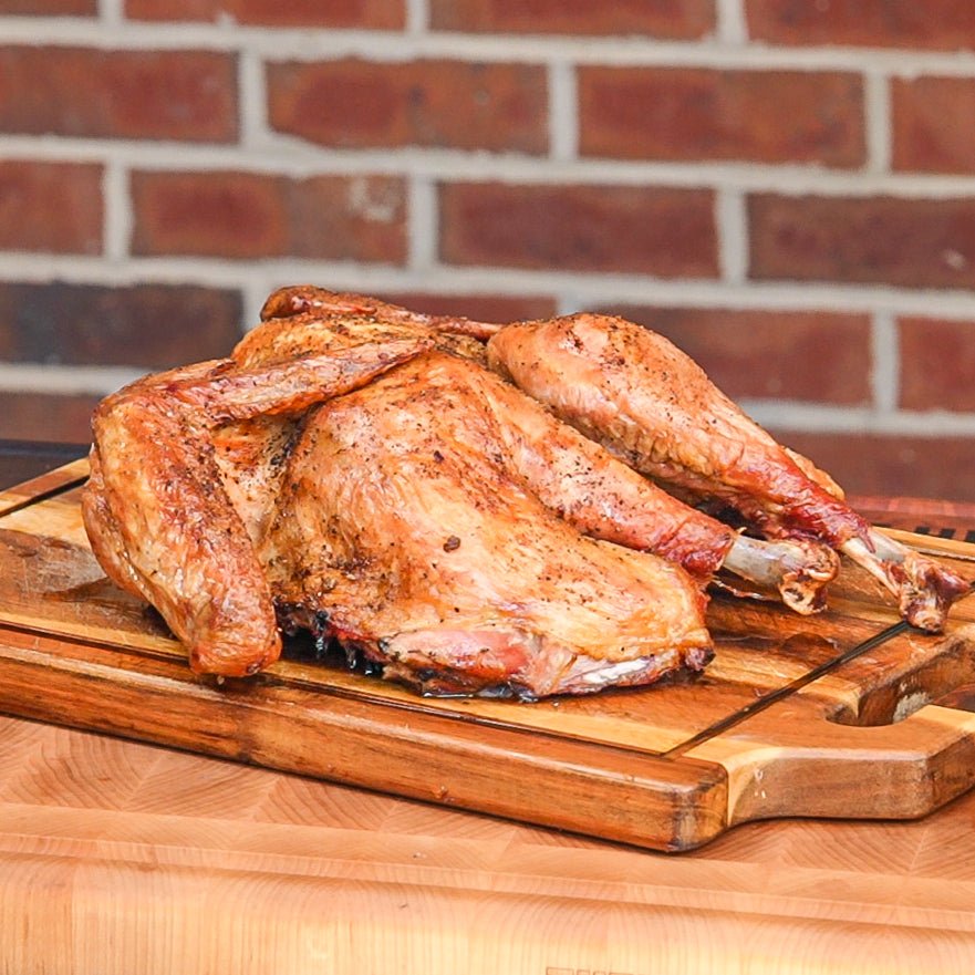 - Rest & Serve Remove the turkey from the grill and cover loosely with foil.