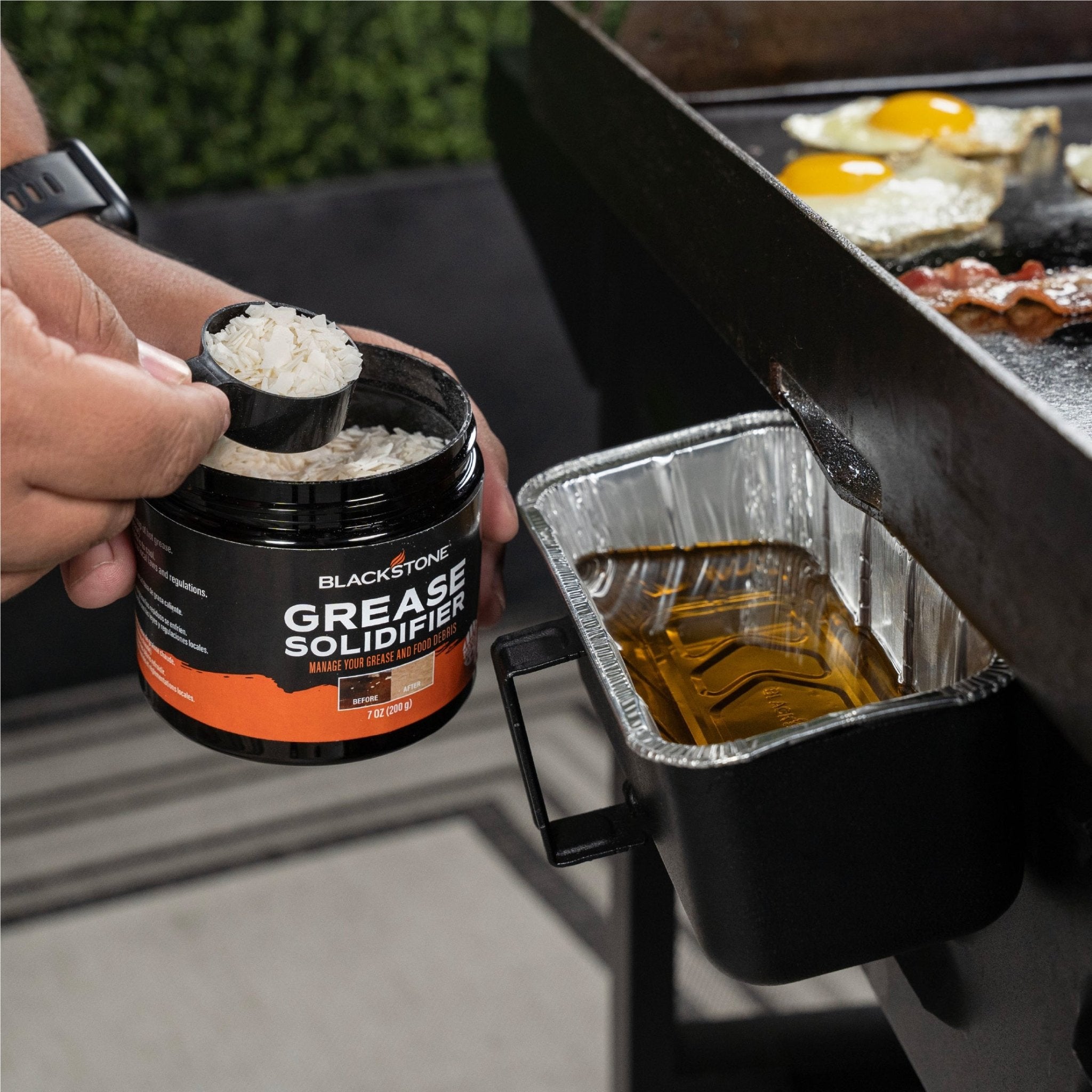 Spend less time cleaning up after using your griddle with the Blackstone Grease Solidifier. Simply add 1-2 scoops of this innovative solidifier to every cup of hot grease, and watch as it solidifies in no time, making disposal a breeze.