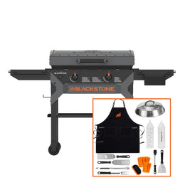 The griddle includes Omnivore Griddle Plate, Rear Grease Management, protective hood, side shelf hooks, BAR System, and accessory bin.