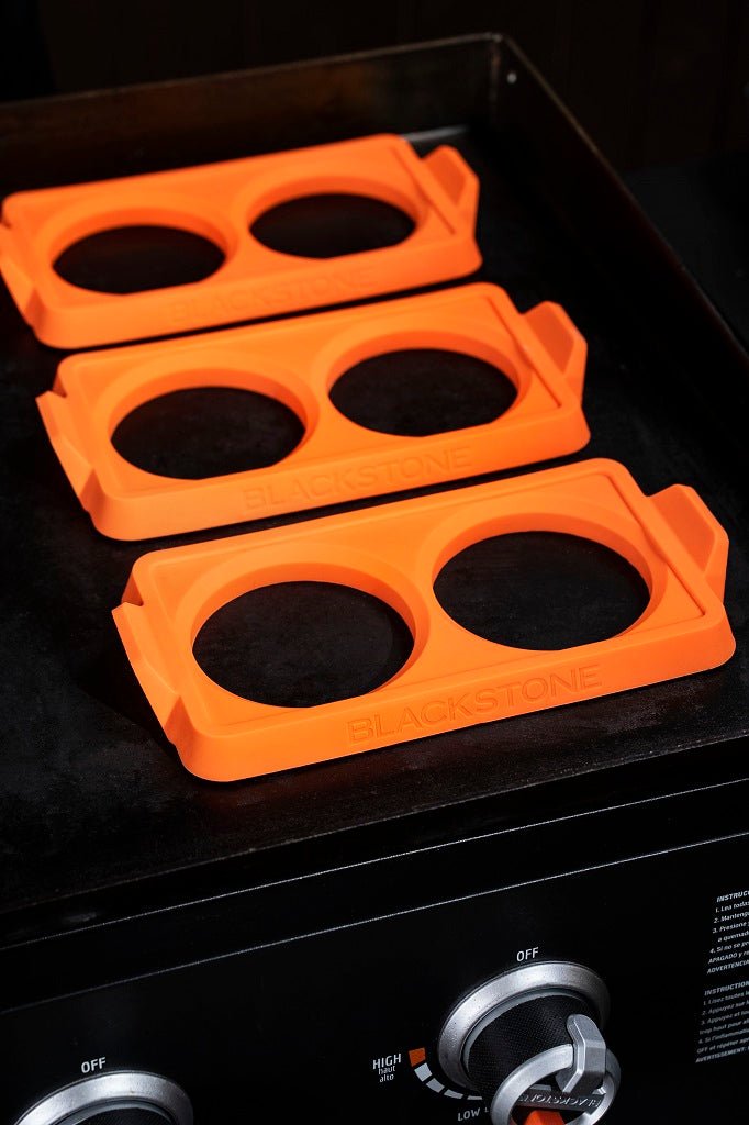 - Made of food-grade silicone with lift tabs for removing off the griddle.