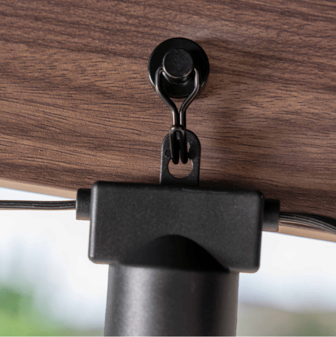 - Magnetic hooks included to suspend patio lights or other accessories.